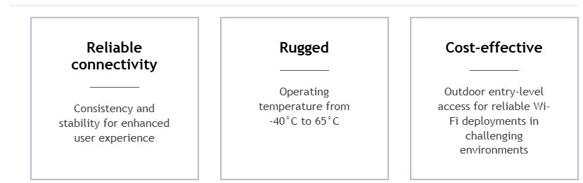 - Offers 2.4GHz/5GHz/6GHz radios serving the density high-capacity needs of next generation mobility and IoT-enabled networks.